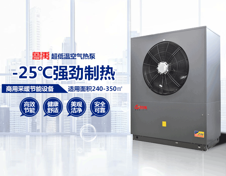 魯禹家用空氣源熱泵供暖機(jī)組由壓縮機(jī)、冷凝器、膨脹閥、蒸發(fā)器等部件組成。在室外熱能轉(zhuǎn)移過(guò)程中,每消耗1份電能,就可以為室內(nèi)提供4份的熱量(根據(jù)不同運(yùn)行狀態(tài),該值也會(huì)有所不同)。
