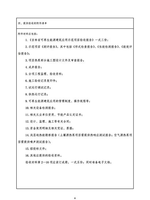 1.《吉林省可再生能源建筑應(yīng)用示范項(xiàng)目驗(yàn)收報(bào)告》一式三份;