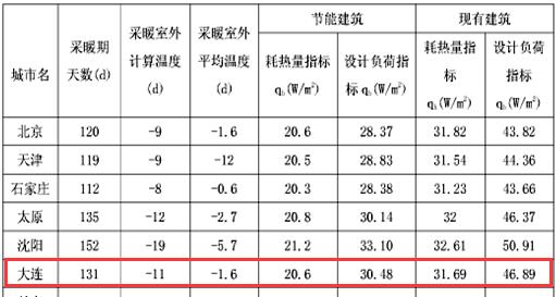 根據(jù)《全國主要城市采暖期耗熱量指標(biāo)和采暖設(shè)計(jì)熱負(fù)荷指標(biāo)》,大連市中山區(qū)節(jié)能建筑每平方米采暖季供暖所需熱能為20.6w/㎡*24h*131d/1000=64.77kwh/㎡