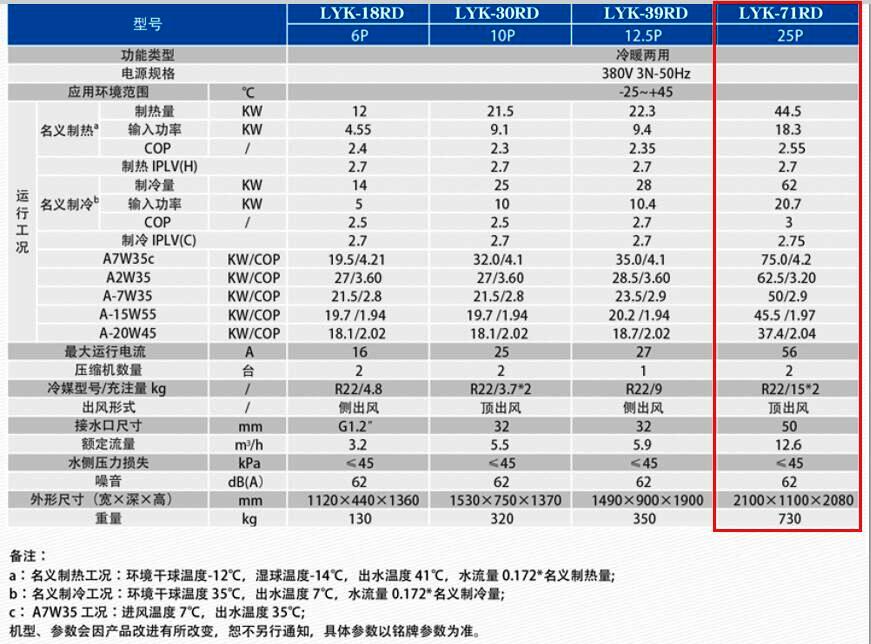 三、魯禹LYK-71RD超低溫空氣源熱泵機(jī)組參數(shù)