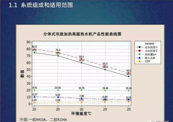 -空氣源熱泵冬季在室外較低溫度的供暖設(shè)計(jì)工況下,冷凝溫度和供水溫度有一定限制,因此,設(shè)計(jì)水溫不能過高。