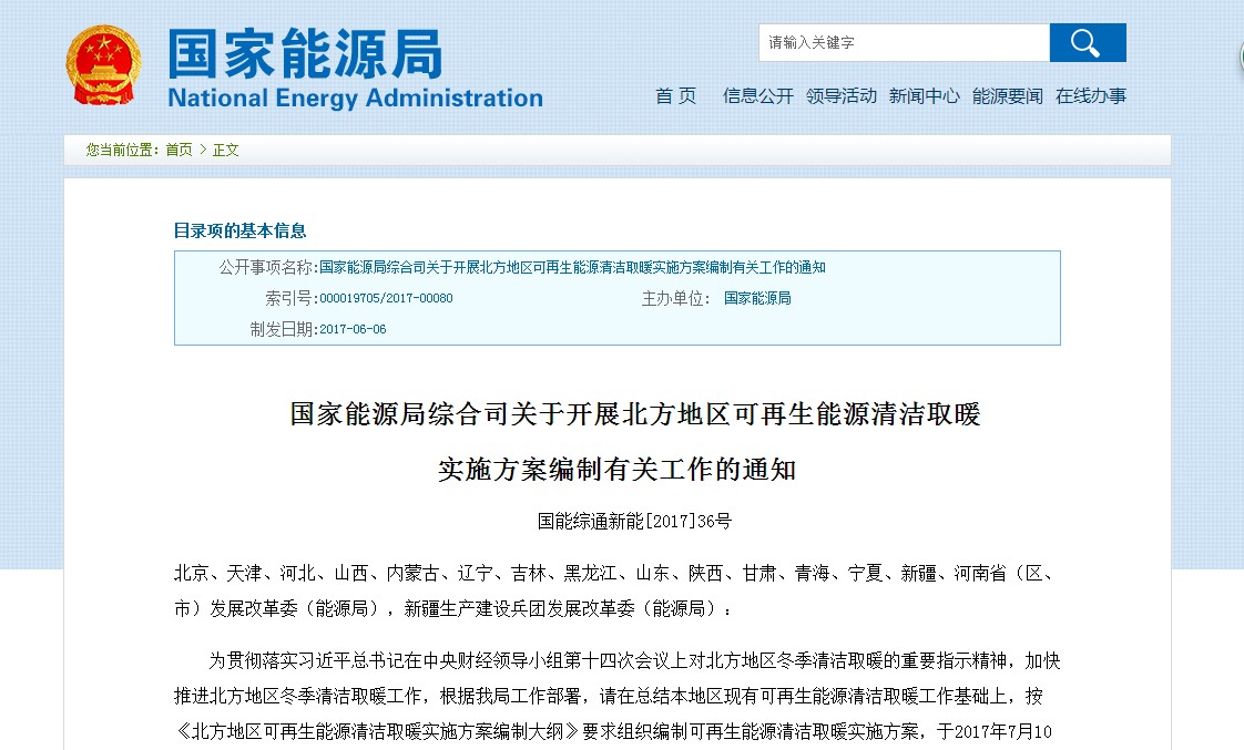 各地區(qū)要根據(jù)當?shù)刭Y源優(yōu)勢和取暖需求,按集中供暖與分散取暖相結(jié)合的原則,確定適合當?shù)貙嶋H的主推的可再生能源供暖方式。提出2017-2021年可再生能源清潔取暖的重大工程,列出各地區(qū)今年啟動的可再生能源清潔取暖工程,爭取一部分工程在2017年度供暖季前完工投入使用。