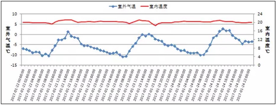 在北京整個(gè)采暖季,即便最低室外氣溫達(dá)-12℃,室內(nèi)溫度維持18~21℃;