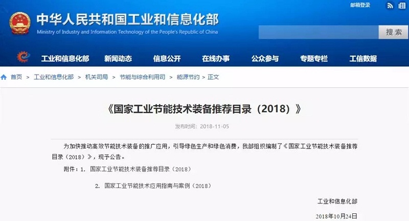 2018年11月5日,工業(yè)和信息化部發(fā)布《國家工業(yè)節(jié)能技術(shù)裝備推薦目錄(2018)》公告,其中“高溫氣源熱泵烘干系統(tǒng)節(jié)能技術(shù)、單機(jī)雙級螺桿型空氣源熱泵機(jī)組節(jié)能技術(shù)”兩項(xiàng)空氣源熱泵技術(shù)、案例成功入選《國家工業(yè)節(jié)能技術(shù)裝備推薦目錄(2018)》及《國家工業(yè)節(jié)能技術(shù)應(yīng)用指南與案例(2018)》。
