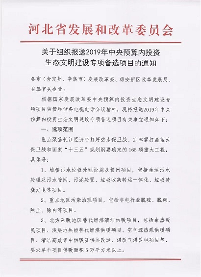文件名稱:《關(guān)于組織申報2019年中央預(yù)算內(nèi)投資生態(tài)文明建設(shè)專項備選項目的通知》