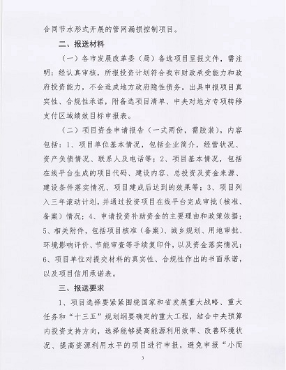 2018年9月10日前,各省轄市、省直管縣(市)發(fā)展改革委將申報文件及有關(guān)材料報送省發(fā)展改革委(環(huán)資處)。