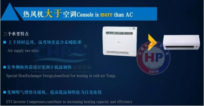 那么,熱泵熱風(fēng)機(jī)是什么呢?熱泵熱風(fēng)機(jī)是強(qiáng)化制熱的空調(diào),跟空調(diào)沒有本質(zhì)的差異。熱風(fēng)機(jī)優(yōu)于空調(diào)三個(gè)重要特點(diǎn):一是上下同時(shí)送風(fēng),溫度場(chǎng)更適合采暖需求;二是室外側(cè)換熱器設(shè)計(jì)更利于低溫制熱;三是變頻噴氣增焓壓縮機(jī),提高低溫制熱能力以及能效。