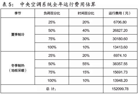 根據(jù)該項(xiàng)目特點(diǎn),中央空調(diào)系統(tǒng)運(yùn)行時間:制冷季按100天、采暖季90天計(jì)算;運(yùn)行時間:制冷季空調(diào)每天運(yùn)行12小時,采暖季每天運(yùn)行14小時;電費(fèi)按0.9元/kWh(商用電)計(jì)算。