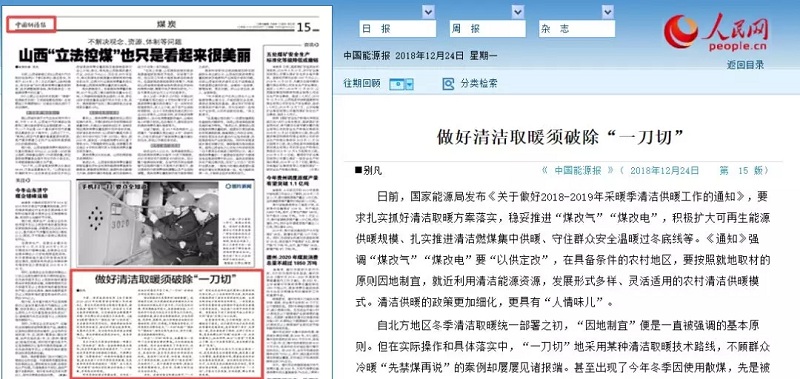 自北方地區(qū)冬季清潔取暖統(tǒng)一部署之初,“因地制宜”便是一直被強(qiáng)調(diào)的基本原則。但在實(shí)際操作和具體落實(shí)中,“一刀切”地采用某種清潔取暖技術(shù)路線,不顧群眾冷暖“先禁煤再說(shuō)”的案例卻屢屢見(jiàn)諸報(bào)端。甚至出現(xiàn)了今年冬季因使用散煤,先是被曲陽(yáng)縣環(huán)保局通報(bào)為“拘留”后又改為“批評(píng)教育”的兩位村民要求環(huán)保局上門(mén)道歉,否則起訴的鬧劇。