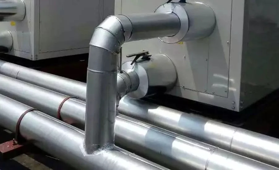 空氣源熱泵供暖的管道保溫室外采用B1級30mm厚,室內(nèi)可以采用美B1級20mm厚。(黑色)室外保溫外層采用鋁皮,室內(nèi)保溫外層采用白色扎帶綁扎美觀。管道閥門及拐彎處須做好保溫不能出現(xiàn)管道外露點。